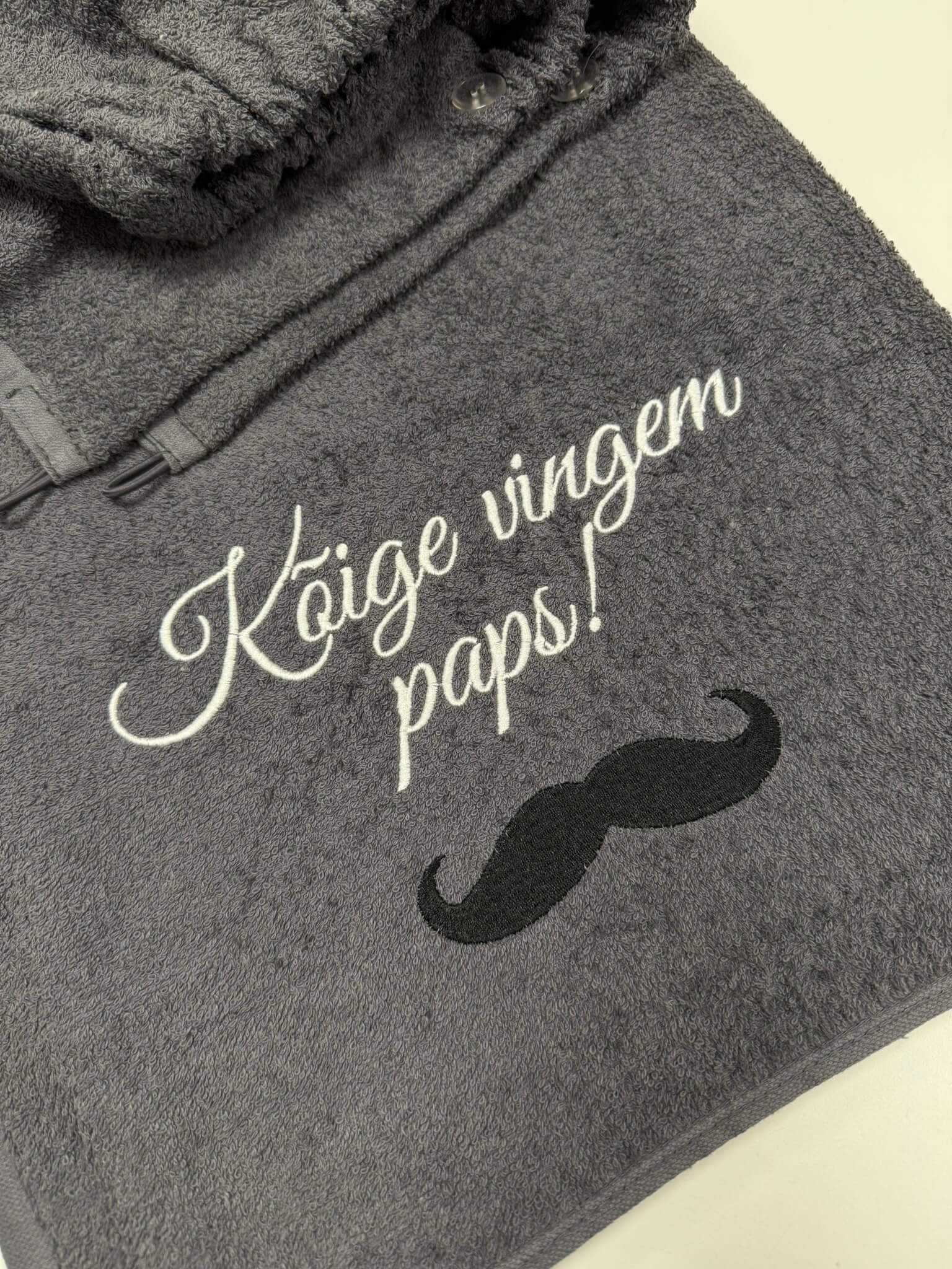 Puuvillane saunaseelik tikitud sõnumiga “Kõige vingem paps” on praktiline ja südamlik kingiidee, mis sobib sünnipäevaks, isadepäevaks, jõuludeks või lihtsalt tänutäheks.