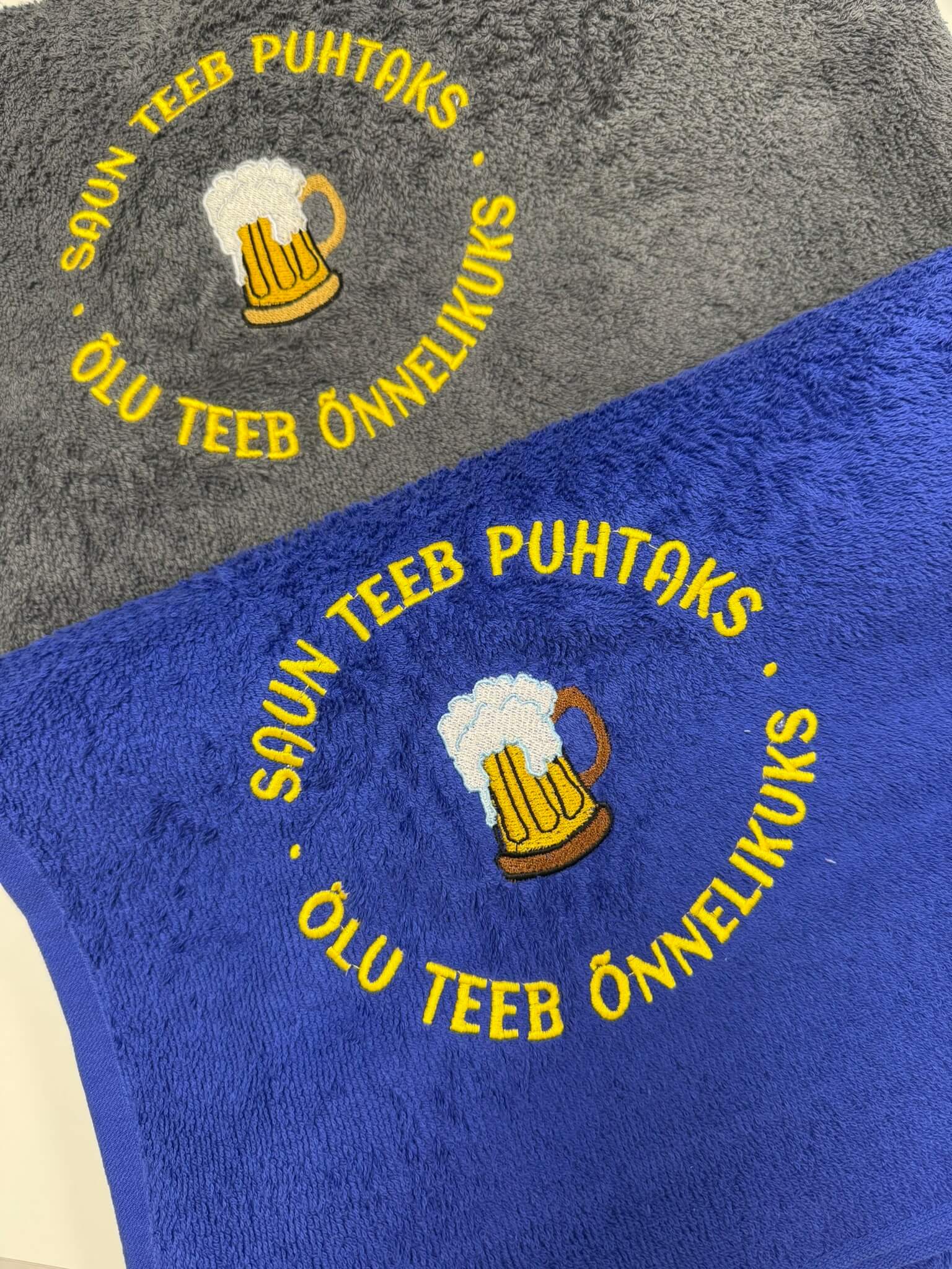 Puuvillane saunaseelik tikitud sõnumiga “Saun teeb puhtaks, õlu teeb õnnelikuks” on praktiline ja tore kingiidee sauna ja õlut nautivale mehele. Tikand teeb saunaseeliku kordumatuks ja omanäoliseks. Tikandiga personaliseeritud saunaseelik on meeldejääv kingitus igaks tähtpäevaks- sünnipäev, isadepäev, sõbrapäev, jõulud jne. Tikitud sõnumiga toode on praktiline ja emotsiooni loov. Kingi isale, mehele, sõbrale, vennale, vanaisale tikandiga saunaseelik ja võid kindel olla, et see toreda sõnumiga, praktiline kingitus jääb saajale meelde aastateks.